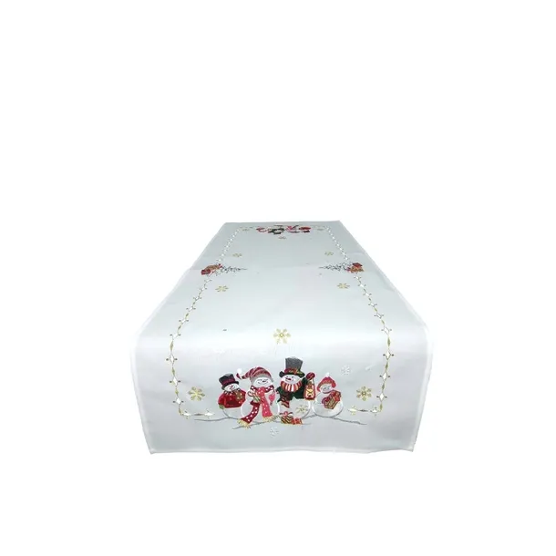 Wprowadź do swojego domu magiczną, świąteczną atmosferę dzięki eleganckiemu bieżnikowi na stół. Model w klasycznym beżowym kolorze ozdobiony został świątecznymi bałwankami i złotymi gwiazdkami.