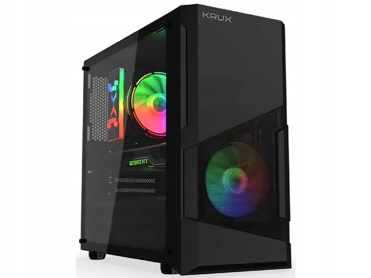 Obudowa Krux Cosmo jest zaprojektowana w taki sposób, aby łączyć funkcjonalność i kompaktowość. Bez problemu zmieścisz w jej wnętrzu płyty mATX lub mITX. Dodatkowo, tafla szkła hartowanego na boku obudowy umożliwia podziwianie pracy i oświetlenia Twojego wymarzonego PC.