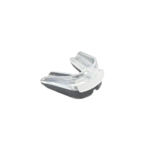 Ochraniacz szczęki pojedynczy, wykonany z materiału termoplastycznego, umożliwiającego dopasowanie ochraniacza do indywidualnego zgryzu.
