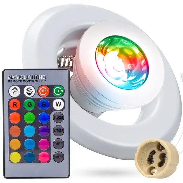 w zestawie z 9x żarówką GU10 RGB sterowaną pilotem 3W oraz 9x gniazdem GU10