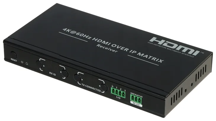 Urządzenie umożliwia przesył sygnału wysokiej rozdzielczości do odbiornika telewizyjnego wyposażonego w złącze HDMI poprzez skrętkę komputerową kat. 5, 5e, 6. Urządzenie może pracować w trybie połączenia "jeden-do-jeden", "wiele-do-wielu" oraz przez switch również w połączeniach kaskadowych. Urządzenie dodatkowo wyposażone jest w wejście i wyjście sygnału sterującego IR (nadajnik i odbiornik IR w zestawie), wejścia/wyjścia sterujące (I/O), port RS-232 oraz port mini-USB przeznaczony do aktualizacji oprogramowania. Odbiornik obsługuje zasilanie PoE. HDMI-EX122E-RX doskonale nadaje się do podłączenia tunera satelitarnego, odtwarzacza DVD, komputera czy konsoli do odbiornika, który jest znacznie oddalony od wymienionych urządzeń. Do telewizora należy doprowadzić tylko jedną skrętkę komputerową co ułatwia instalację urządzenia oraz poprawia estetykę instalacji. Uwaga! Urządzenie pracuje od strony monitora.