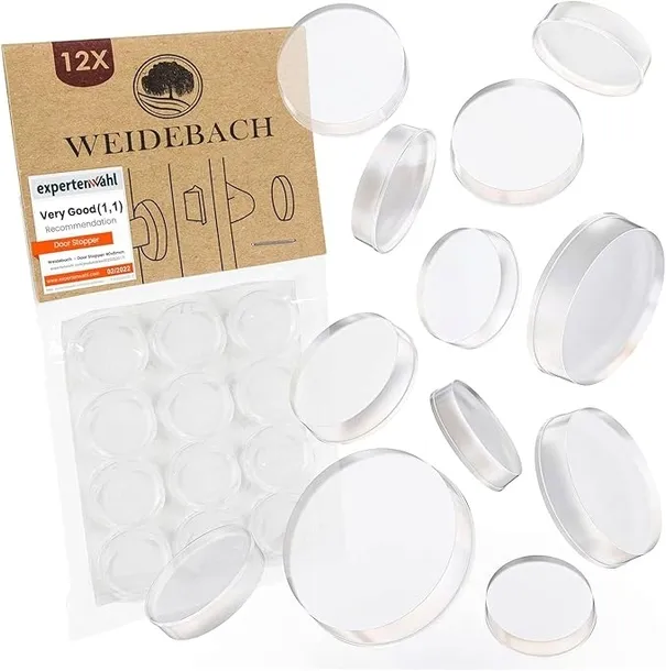 - Przezroczysty design: Dzięki transparentnemu wyglądowi, odbojniki są dyskretne i pasują do każdego wnętrza, nie wpływając na estetykę ścian, drzwi czy mebli.