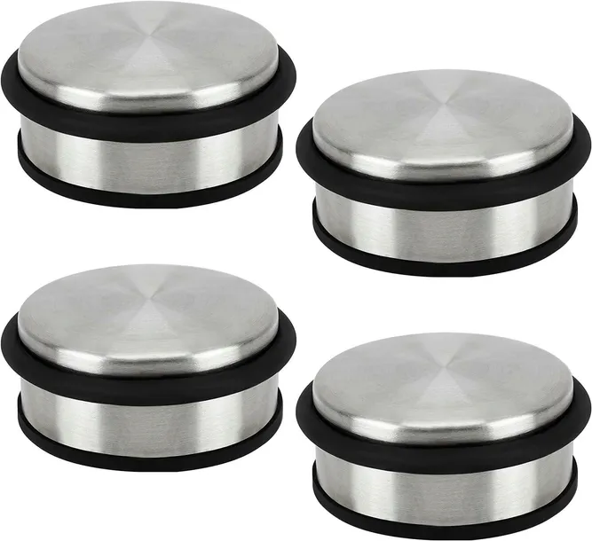 Wykonane z wytrzymałej, odpornej na rdzę i wysokiej jakości szczotkowanej stali nierdzewnej. Każdy ogranicznik drzwi ma gładką powierzchnię. Górna część stoperów jest zaokrąglona, a spód to płaska podstawa obciążenia. W górnej części ogranicznika znajduje się trwały gumowy pierścień ochronny, a na spodzie znajduje się gumowa podkładka do chwytania wszystkich rodzajów powierzchni.