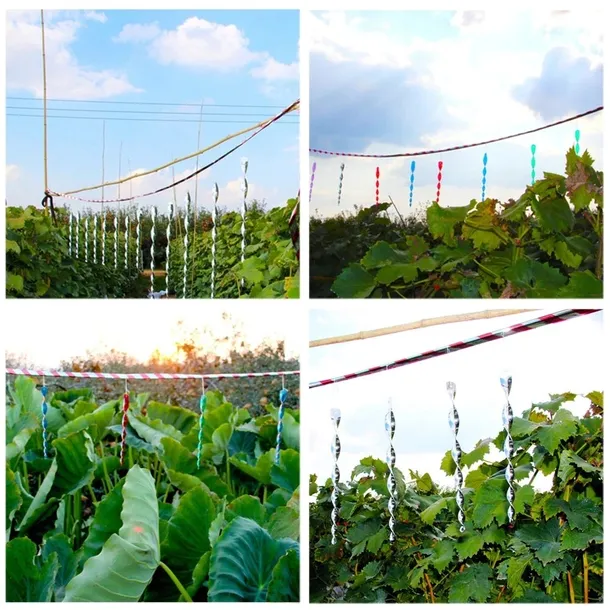 - 【Dekoracyjne】: Odblaskowe słupki odstraszające ptaki można zawiesić w ogrodach, werandach, oknach i na drzewach owocowych w celu zniszczenia. Ciesz się także olśniewającym światłem słonecznym załamanym przez przędzenie.