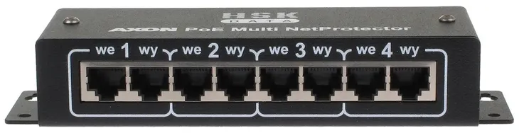 AXON-POE-MULTINET to wielokanałowe urządzenie firmy AXON służące do ochrony przeciwprzepięciowej urządzeń dołączonych do sieci Ethernet 10/100 Mb/s i zasilanych zdalnie w technologii PoE