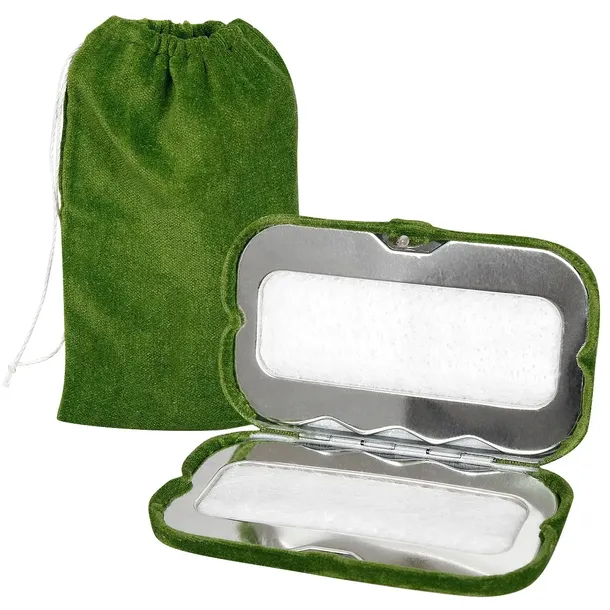 - Pudełko ogrzewacza powleczone jest zielonym aksamitnym materiałem