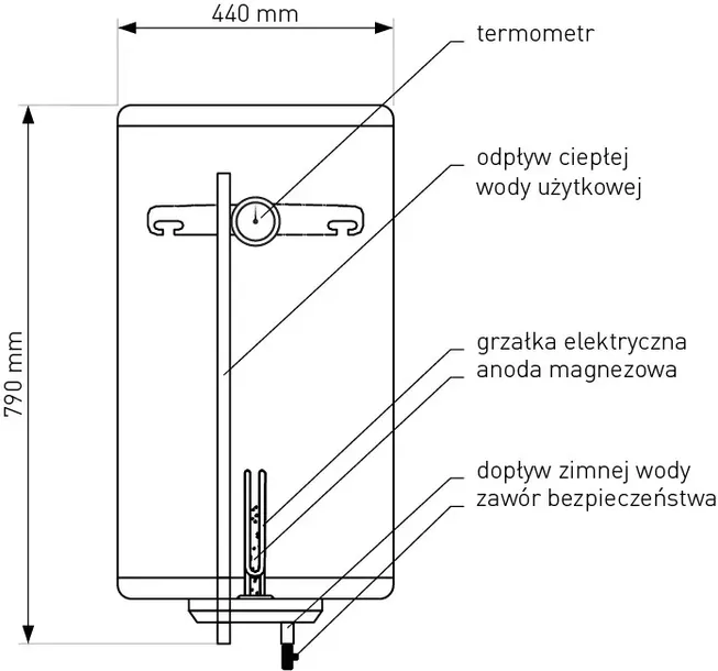 Podwójne zabezpieczenie przed korozją: emalia ceramiczna i anoda magnezowa.