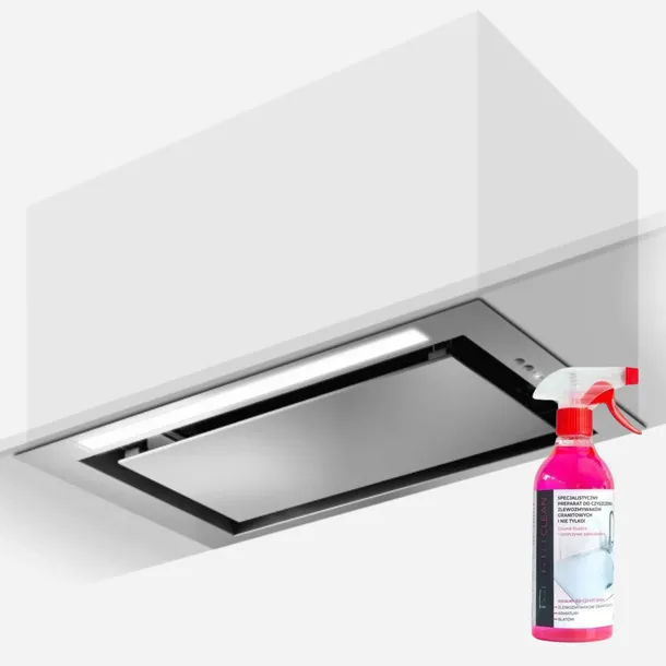 Okap ENTER został zaprojektowany do zainstalowania wewnątrz szafki. Wyposażony jest w pochłanianie szczelinowe, a ultra plaska ramka w połączeniu z nowoczesnym wyglądem gwarantuje niewidoczność okapu zgodnie z najnowszymi trendami rynkowymi.