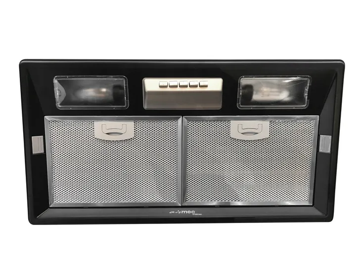 Okap do zabudowy w szafce marki FALMEC, posiada 3 poziomy mocy, sterowany elektromechanicznie. Nominalna wydajność turbiny wynosi 379 m3/h.