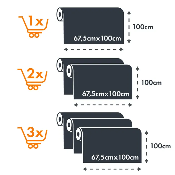 - Kupując 3 sztuki, otrzymasz trzy oddzielne rolki, każda o wymiarze 67,5 cm x 100 cm.