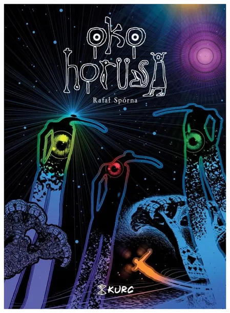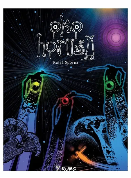 W niedalekiej przyszłości w Dallas ludzie umierają podczas snu. Oczy ofiar są zakrwawione a tęczówki i źrenice całkowicie zanikają. Co wspólnego z tym ma lekarz William Richtings a szczególnie jego psychodeliczne podróże po spożyciu DMT i pojawiające się w wizjach świetliste istoty? Czy Malcolm Masterson, właściciel firmy farmaceutycznej, ma rację twierdząc, że w snach mieszkańcy Dallas są atakowani przez obcą cywilizację? Czy szczepionka będzie skutecznym ratunkiem? Oko Horusa to najnowszy komiks Rafała Spórny, autora rewelacyjnego Alchenitu. Oryginalna wizja i waga podejmowanego tematu wyróżnia twórczość Spórny. Autentyczna walka toczy się poza, a może ponad świadomością. Która rzeczywistość jest prawdziwa? Jak wygrać konflikt, gdy realność wymyka się, a umysł odmawia akceptacji otoczenia?
