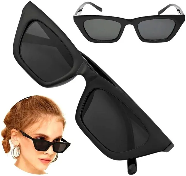 ⭐⭐Okulary Czarne damskie Przeciwsłoneczne PROSTOKĄTNE retro pilotki KOCIE cat⭐⭐