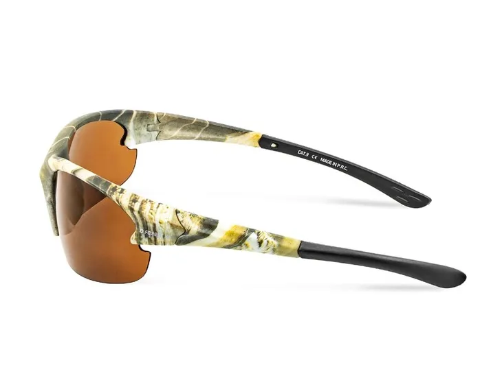 Okulary polaryzacyjne z serii SG Forest w kamuflażu zostały stworzone specjalnie dla wędkarzy i myśliwych. Brązowe okulary polaryzacyjne gwarantują ochronę przed promieniami słonecznymi podczas polowań lub spacerów na łonie natury.