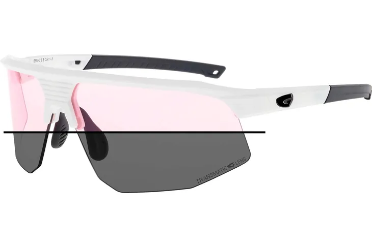 Soczewki fotochromowe szybko i efektywnie dostosowują się do zmiennych warunków oświetlenia. Pod wpływem promieniowania słonecznego kategoria soczewek fotochromowych TRANSMATIC G-LENS zmienia się w okularach przeciwsłonecznych w zakresie od kat. 1 do kat. 3. Soczewki fotochromowe gwarantują komfortowe uprawianie sportów w zmieniających się warunkach oświetlenia.