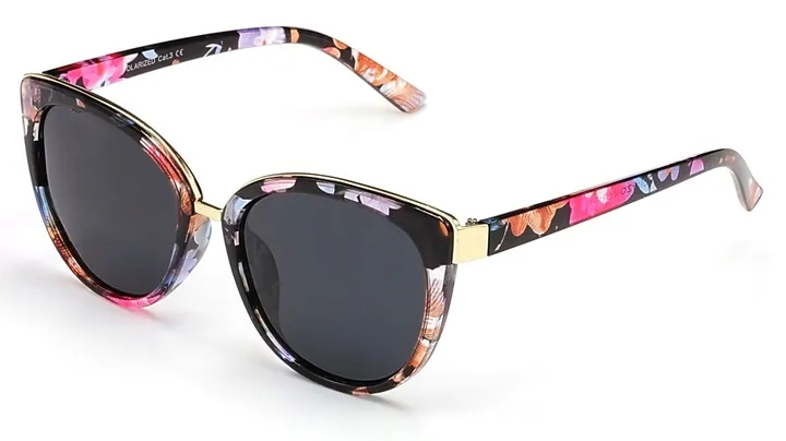 Okulary te charakteryzują się atrakcyjnym stylem "kocim" z motywem kwiatowym, który doda blasku każdemu Twojemu strojowi. Są one idealne zarówno do codziennego użytku, jak i na specjalne okazje. Uniwersalny filtr CAT.3 w połączeniu z soczewkami polaryzacyjnymi sprawia, że są one niezbędne podczas każdego słonecznego dnia.