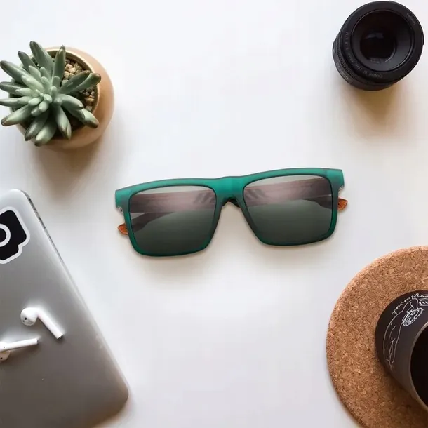 ✔️Niepowtarzalny design dzięki drewnianym zausznikom i stylowym, kolorowym oprawkom.