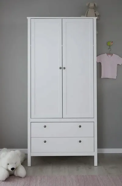 Szafa dla dzieci jest wyposażona w drążek do wieszania ubrań i 2 szuflady.