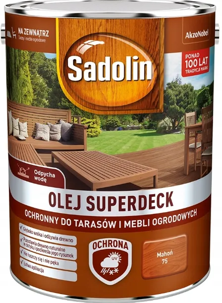 Olej do drewna tarasów płotów elewacji SADOLIN SUPERDECK Mahoń 5L