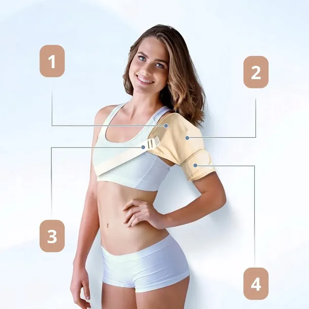 ✅ 2) — Czterowarstwowa budowa wspiera szybkie łagodzenie bólu barku.