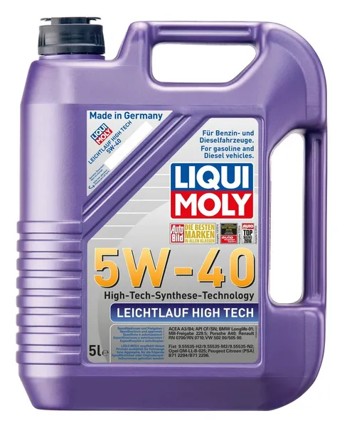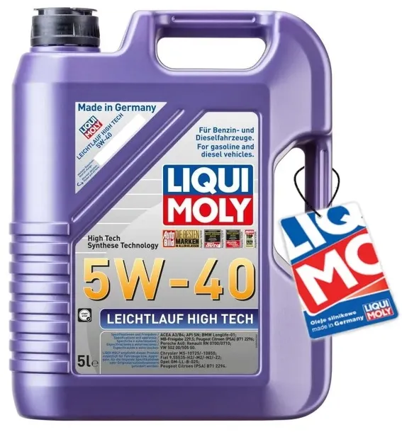 OLEJ SILNIKOWY LEICHTLAUF HIGH TECH (5L) 5W40 ,API CF, SM, ACEA A3, B4, BMW LL-01, FIAT 9.55535 H2, FIAT 9.55535 M2, GM LL-B-025, MB 229.5, OPEL LL-B-025, PORSCHE A40, RENAULT RN 0700, RENAULT RN 0710