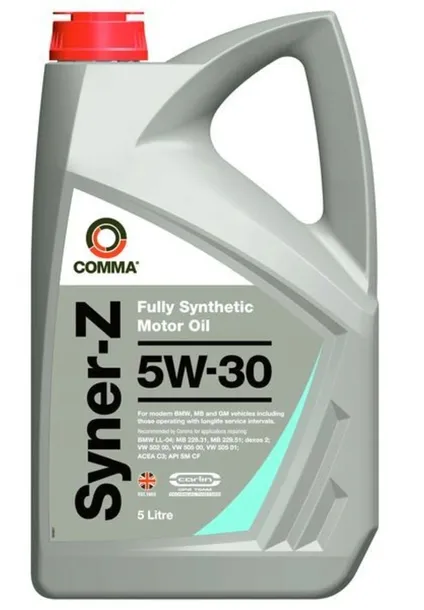 Syntetyczny olej silnikowy COMMA SYNER-Z o lepkości 5W30 szczególnie zalecany jest do nowoczesnych jednostek napędowych benzynowych i Diesla, stosowanych w samochodach sportowych o dużej mocy. Nadaje się do układów wielozaworowych z wtryskiem i z katalizatorem oraz w samochodach wyposażonych w filtr cząsteczek stałych, spełniających wymagania normy ACEA C3. Zapewnia natychmiastową ochronę silnika podczas zimnego rozruchu i pracy w wysokich temperaturach. Bezpopiołowa formuła zapobiega tworzeniu się nagarów, laków, szlamów i osadów w najgorętszych częściach silnika wydłużając tym samym jego żywotność. Obniżona lepkość pozwala na oszczędność paliwa i zwiększenie sprawności silnika.