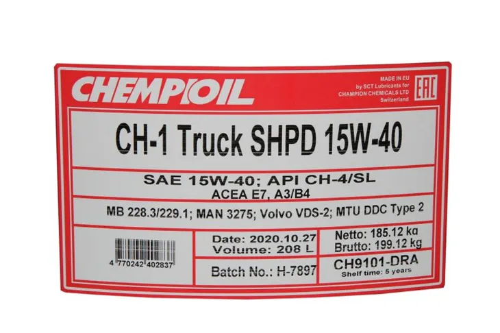Przedmiot: CH-1 SHPD 15W40 208L M OLEJ SILNIKOWY (208L) 15W40 ,API CF-4, CG-4, CH-4, SL, ACEA A3, B4, E3, E7, MAN 3275, MB 228.3, MB 229.1, VOLVO VDS-2