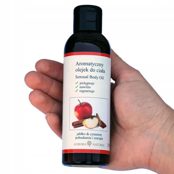 Pielęgnacyjny olejek do ciała. Pobudzający i dodający energii zapach jabłka z cynamonem.