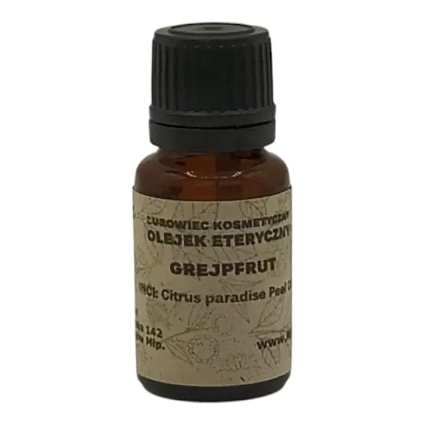 Olejek eteryczny z grejpfruta jest pozyskiwany z owoców cytrusowego drzewa grejpfruta (Citrus paradisi). Posiada orzeźwiający i owocowy zapach oraz wiele właściwości i zastosowań. Oto niektóre z właściwości i zastosowań olejku eterycznego z grejpfruta: Energizacja i poprawa nastroju: Zapach olejku grejpfrutowego może działać orzeźwiająco i poprawiająco na nastrój. Stosowanie go w aromaterapii może pomóc w redukcji stresu, lęku oraz zmęczenia. Wspomaganie odchudzania: Olejek z grejpfruta jest często stosowany w planach odchudzania ze względu na jego zdolność do wspomagania metabolizmu, redukcji apetytu oraz oczyszczania organizmu. Detoksykacja: Olejek ten może pomóc w wspieraniu procesów detoksykacji organizmu poprzez wspomaganie pracy wątroby i układu limfatycznego. Wspomaganie układu trawiennego: Olejek grejpfrutowy może pomóc w stymulacji układu trawiennego, poprawie funkcji żołądka oraz łagodzeniu wzdęć. Oczyszczanie skóry: Może być stosowany w pielęgnacji skóry ze względu na jego właściwości antyseptyczne i oczyszczające. Pomaga w zwalczaniu trądziku, nadmiernego wydzielania sebum oraz innych problemów skórnych. Wspomaganie układu odpornościowego: Olejek grejpfrutowy zawiera antyoksydanty, które mogą pomagać w wzmocnieniu układu odpornościowego i ochronie przed infekcjami. Właściwości przeciwbakteryjne: Ma właściwości przeciwbakteryjne i przeciwwirusowe, co może być przydatne w dezynfekcji powietrza i powierzchni. Wspomaganie krążenia: Olejek z grejpfruta może pomagać w poprawie krążenia krwi, co przyczynia się do lepszego dostarczania tlenu i składników odżywczych do tkanek. Należy pamiętać, że olejek grejpfrutowy może być fotouczulający, co oznacza, że może zwiększać wrażliwość skóry na promieniowanie UV. Po jego zastosowaniu unikaj ekspozycji na słońce przez co najmniej 12 godzin. Przed użyciem olejku zawsze przeprowadź test uczuleniowy i skonsultuj się z aromaterapeutą lub specjalistą od zastosowań naturalnych terapii, aby upewnić się, że jest on odpowiedni dla Twoich potrzeb i zdrowia. Nazwa botaniczna: Citrus paradisi Kolor i zapach: Jasnożółty, ma zapach cytrusowy. Aromat jest pikantny jak grejpfrut, ale jednocześnie słodki. Przypomina aromat skórki grejpfruta, ale jest bardziej skoncentrowany. Ciężar właściwy: Składniki: (+)-Limonene, B-Myrcene, a-Pinene, Sabinene, Nootkatone, Bergapten Rozpuszczalność: Metody ekstrakcji: