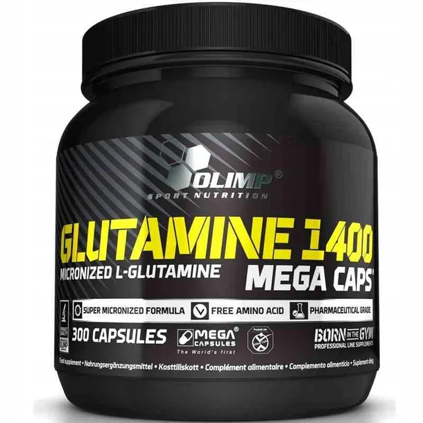 Suplement diety Olimp Glutamine 1400 Mega Caps 300 kapsułek zapewnia łatwy sposób na zwiększenie dziennego spożycia tego ważnego aminokwasu. To wysokiej jakości źródło L-Glutaminy. Produkt jest wygodny, łatwy do przyjęcia i zapewnia najwyższe dostępne stężenie.