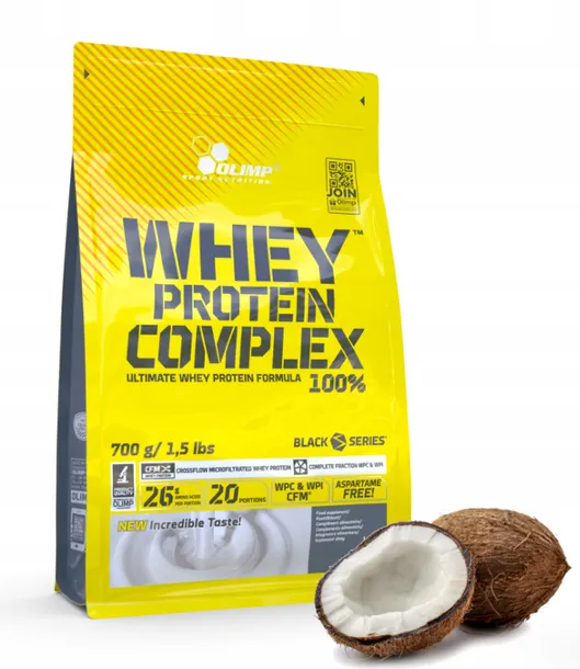 Suplement diety Olimp Whey Protein Complex 100% 700g jest to najwyższej jakości suplement wysokobiałkowy, odżywka białkowa posiadająca najwyższą jakość surowca jest połączeniem dwóch białek, ultrafiltrowane WPC (koncentrat białka serwatkowego) oraz WPI-CFM®. Do produkcji białka firmy Olimp użyto surowców wysokiej jakości, odznaczających się dużą czystością dzięki bogatej wiedzy i wieloletniemu doświadczeniu naukowców z Olimp Labs.