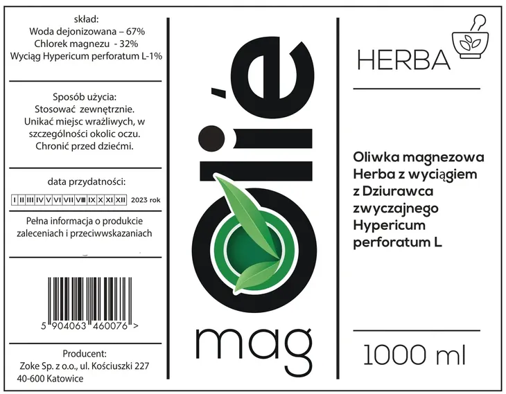 Oliwka magnezowa Herba z wyciągiem z Dziurawca zwyczajnego.
