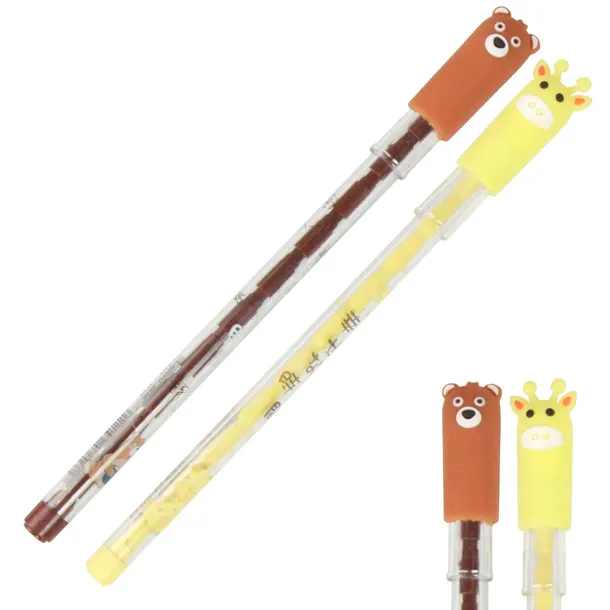 Ołówki segmentowe, przekładane z zatyczkami zakończonymi słodką żyrafką oraz misiem