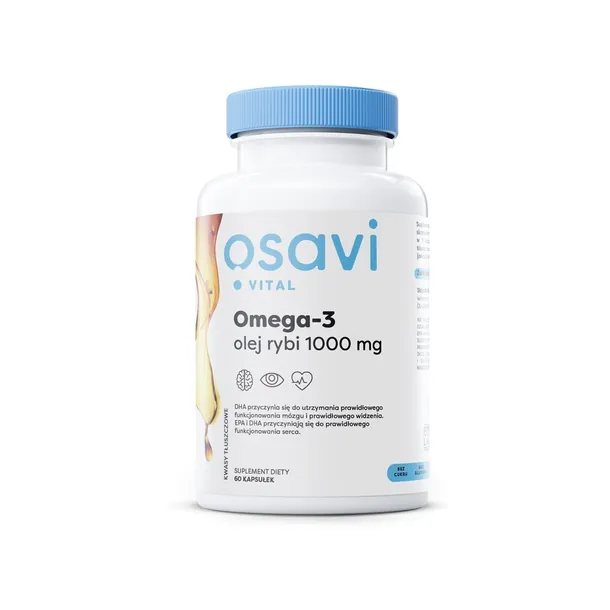 Suplement diety w postaci kapsułki miękkiej ze skoncentrowanym, oczyszczonym olejem rybim (1000 mg w 1 kapsułce). Zawiera niezbędne nienasycone kwasy tłuszczowe (EPA i DHA).