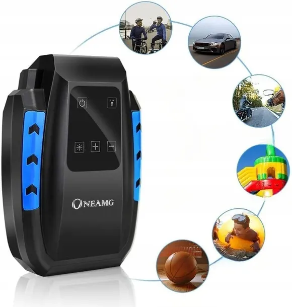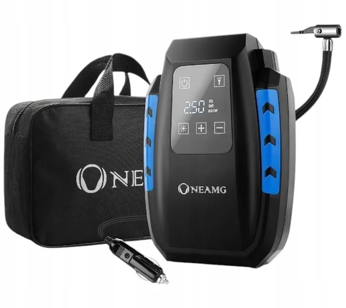 OneAmg 12V przenośny kompresor powietrza to kompaktowe i wydajne urządzenie przeznaczone do szybkiego pompowania opon samochodowych, rowerowych, motocyklowych, a także sprzętu sportowego i rekreacyjnego. Wyposażony w nowoczesny ekran dotykowy, umożliwia precyzyjne ustawienie ciśnienia w czterech jednostkach (PSI, bar, kPa, kg/cm²), a automatyczne wyłączanie po osiągnięciu zadanej wartości zapewnia bezpieczeństwo i wygodę użytkowania. Wbudowane oświetlenie LED pozwala korzystać z urządzenia także po zmroku lub w warunkach słabego oświetlenia.