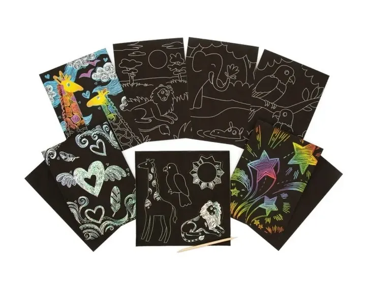 Na tych karteczkach można również zostawiać wiadomości. Sprawdzą się również jako nietypowe laurki czy obrazki. Dzieci uwielbiają te zdrapki, a wydrapane obrazki można oprawić w ramkę i powiesić na ścianie.