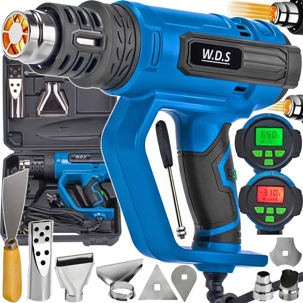 ✅ Opalarka elektryczna z regulacją temperatury LCD 2200W + 6 dysz + 3 skrobaki + szpachelka