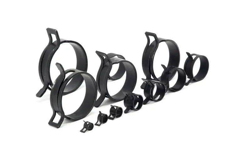 Obejmy samozaciskowe sprężyste wykonane są w celu zapewnienia równomiernego rozkładu sił po obwodzie strefy zacisku. Zastosowanie ich jest zalecane w miejscach, gdzie połączenie z wężem jest narażone na zmiany temperatury, która powoduje kurczenie lub rozszerzanie się materiałów. Obejma ta idealnie sprawdza się tam, gdzie wymagany jest stały nacisk niezależnie od temperatury w jakim pracuje połączenie skutecznie zapobiegając wszelkim nieszczelnością. Opaski samozaciskowe sprężyste to alternatywy dla innych rodzajów opasek. Są używane w takich zastosowaniach, jak konstrukcja małych silników, pojazdów użytkowych, rolniczych i samochodowych systemów i urządzeń.
