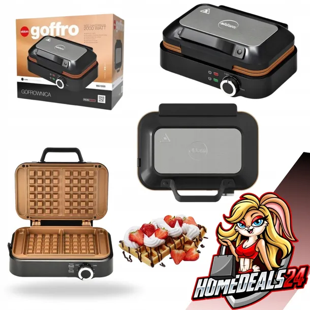 GOFROWNICA ELDOM SOLIDNA 2 DUŻE GOFRY SUPER MOC 2000W CERAMICZNA POWŁOKA