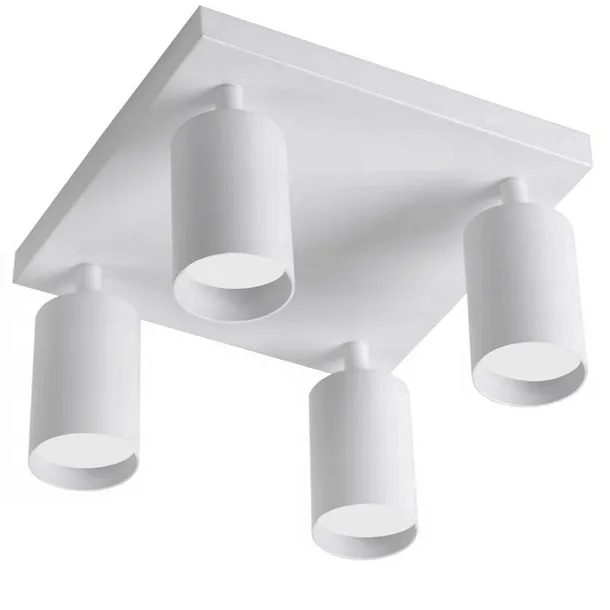 Oprawa sufitowa natynkowa Spoti Quad GU10, aluminiowa mająca zastosowanie jako oświetlenie wewnętrzne. W komplecie znajdują się kołki montażowe.