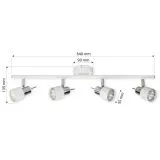 Czteropunktowa oprawa sufitowa w kolorze białym z czterema gniazdami GU10. Przystosowana do żarówek LED GU10, zapewnia kierunkowe i równomierne oświetlenie pomieszczeń. Idealna do salonów, kuchni, biur i korytarzy. Nowoczesna konstrukcja, trwałe wykonanie i prosty montaż.