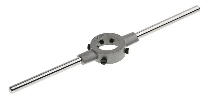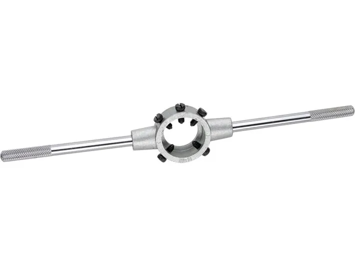 Zastosowane w niej śruby dociskowe zapewniają solidne unieruchomienie narzynki oraz precyzyjne prowadzenie, co jest fundamentalne dla stworzenia doskonałych gwintów. Oprawka jest wyprodukowana z wysokiej jakości stali, co gwarantuje jej długowieczność i wysoką odporność na eksploatację.