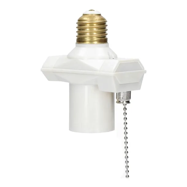Adapter - oprawka E27 z wyłącznikiem łańcuszkowym. Kolor: biały. Opakowanie: woreczek.