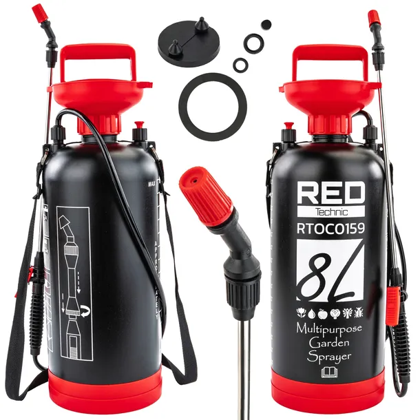 Opryskiwacz ciśnieniowy RED Technic 8L to poręczne i trwałe narzędzie do oprysków, nawożenia i czyszczenia. Wyposażony w regulowaną dyszę, zawór bezpieczeństwa, lancę z uchwytem i pasek nośny. Zapewnia stabilne ciśnienie, wygodną obsługę i możliwość pracy ciągłej. Idealny do ogrodu, szklarni i domu.