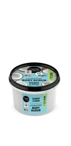 Scrub do ciała na bazie organicznego olejku z kokosa nawilża skórę i przywraca jej równowagę, podczas gdy naturalny cukier delikatnie złuszcza naskórek, pozostawiając skórę miękką i jedwabiście gładką.