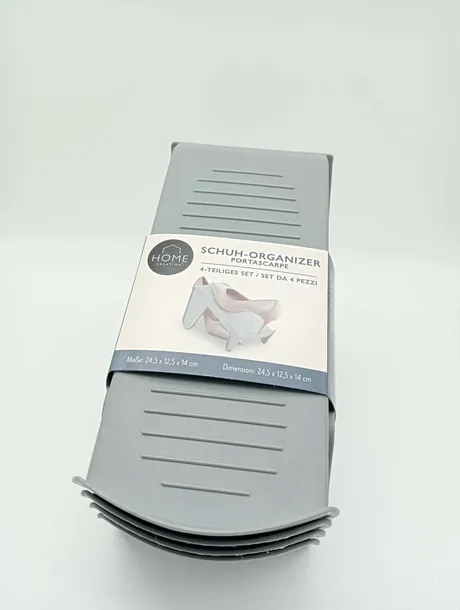 To jest organizer do butów marki Home Creation. Produkt ten to zestaw 4 podwójnych podstawek (schuh-organizer / portacarpe) zaprojektowanych do układania butów piętrowo, co pozwala zaoszczędzić miejsce w szafie lub na półce. Każda podstawka jest regulowana i mieści jedną parę butów, a zestaw mieści łącznie 4 pary butów.