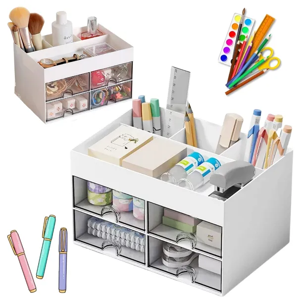 Masz dość bałaganu wśród długopisów, karteczek i drobnych akcesoriów? Ten biały organizer biurkowy z przegródkami i szufladkami to idealne rozwiązanie, które pozwoli Ci utrzymać porządek w pracy, w szkole czy w domu.