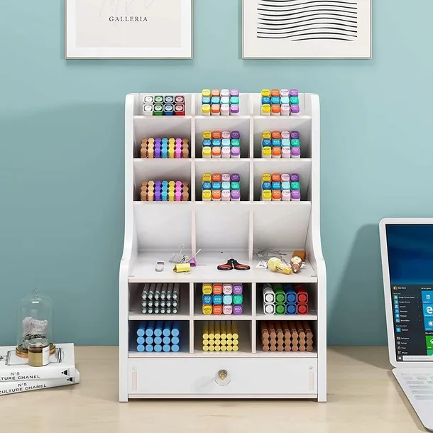 Doskonale sprawdzi się dla nauczycieli, uczniów, młodzieży i dzieci, zarówno w biurze, jak i w szkole czy w domu. Posiada 18 przegródek oraz szufladę, oferując wystarczająco dużo miejsca na małe przedmioty, pomagając uporządkować biurko i zaoszczędzić więcej przestrzeni.