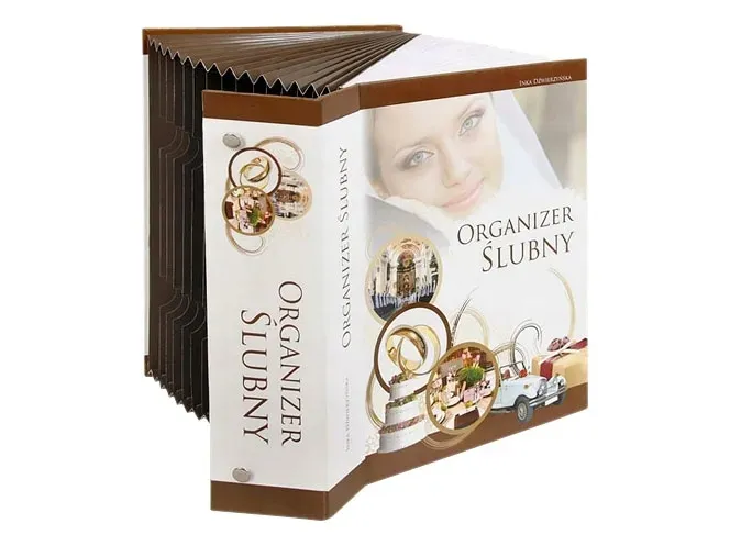 Organizer składa się z trzech części: Katalog ze zdjęciami ,,Inspiracje" zawiera mnóstwo interesujących propozycji dekoracji. Część merytoryczna pomoże sprawnie przygotować uroczystość oszczędzając przede wszystkim czas. Piętnaście tematycznych rozdziałów w najdrobniejszym szczególe zadba o ostateczne dopełnienie obowiązków przedślubnych. Folder z piętnastoma kieszeniami w trzeciej części Organizera pozwoli zachować informacje, umowy, wizytówki zebrane podczas przygotowań.