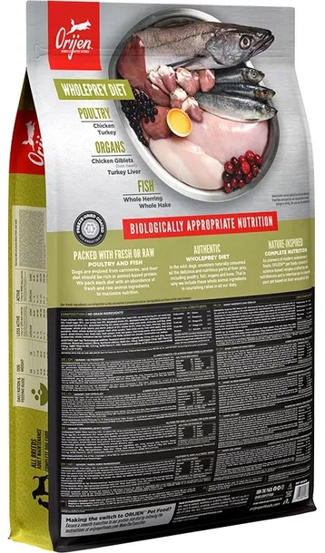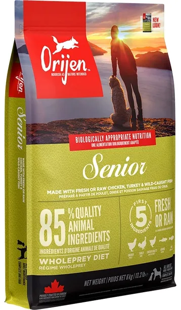 Pełnoporcjowa karma dla starszych psów wszystkich ras z drobiem, rybami i jajami ściółkowymi. Składniki odżywcze świeżego drobiu oraz ryb pozytywnie wpływają na proces żywieniowy starszego psa. Karma Orijen Senior, ma na celu odpowiednią dietę wśród czworonożnych staruszków.Skład