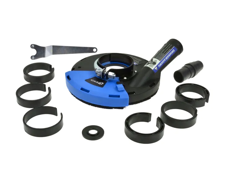 - Osłona ze szczotek, które tworzą szczelną barierę między adapterem, a szlifierką.